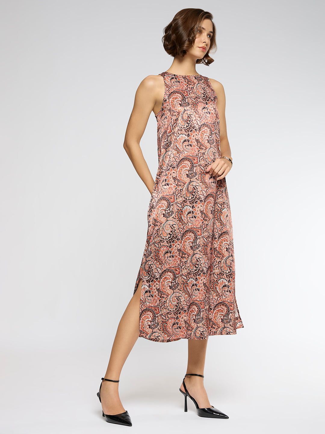 PAISLEY SATIN JACQUARD INCUT A-LINE DRESS
