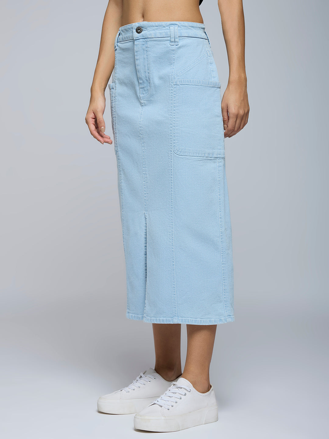 ICE BLUEICE WASH FRONT SLIT STRAIGHT SKIRT