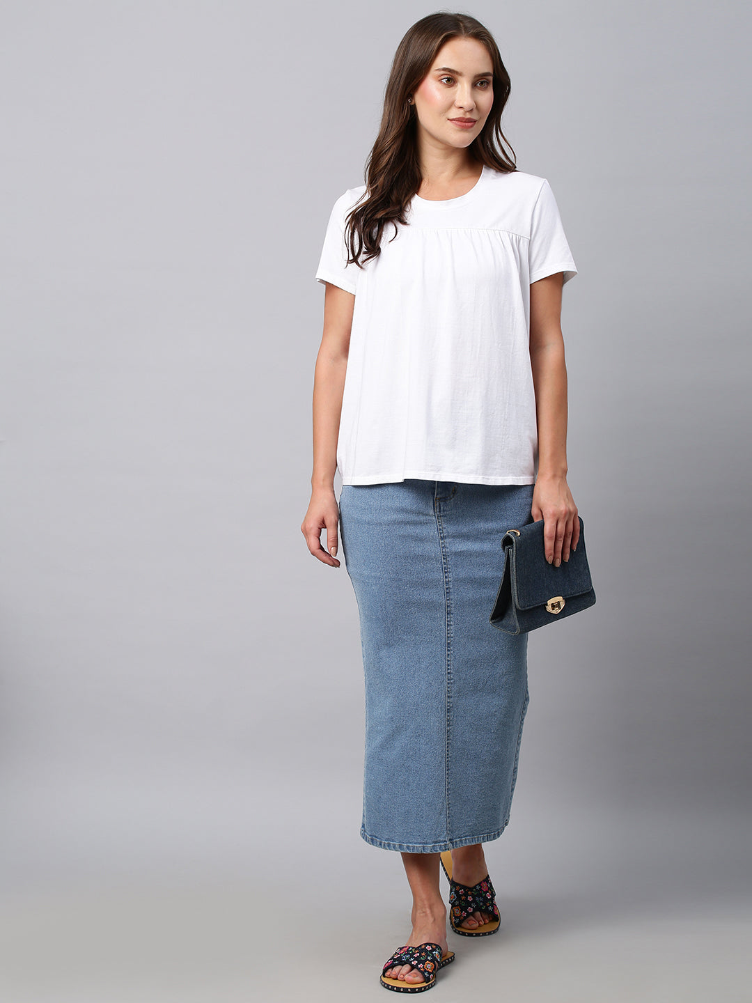 Shop from our soft denim skirts that fit and flatter you from your desk to your dinner plans