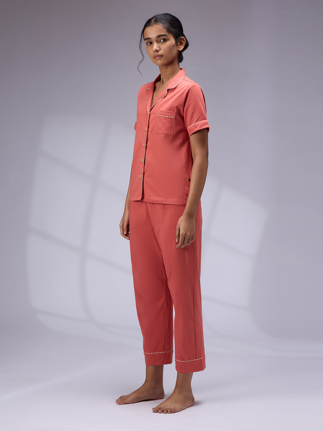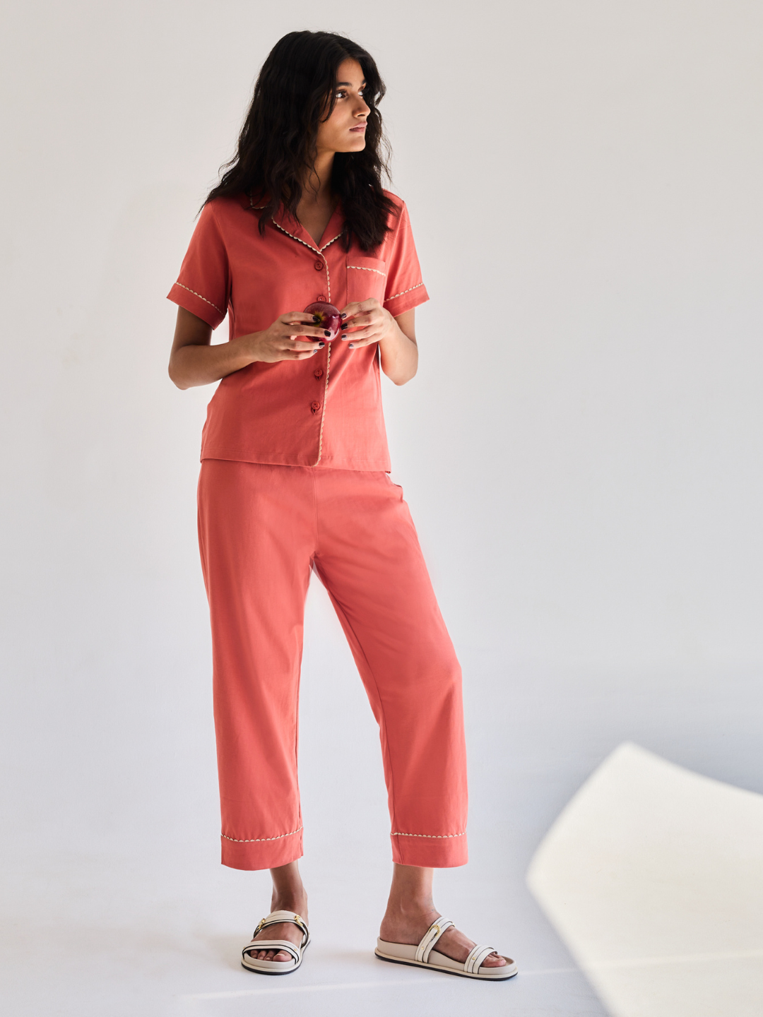 DUSTY CEDAR LAPEL COLLARED NIGHTSUIT