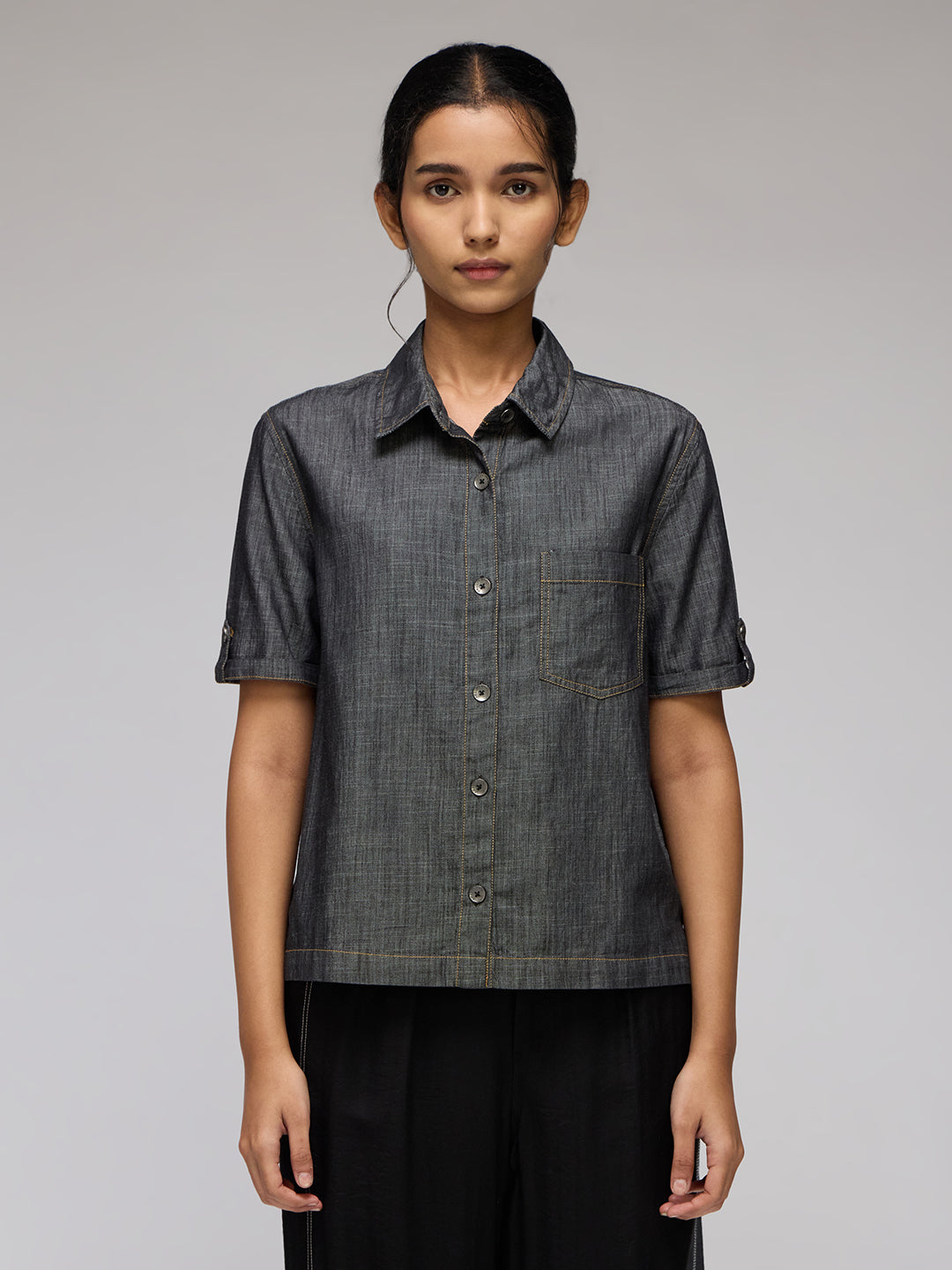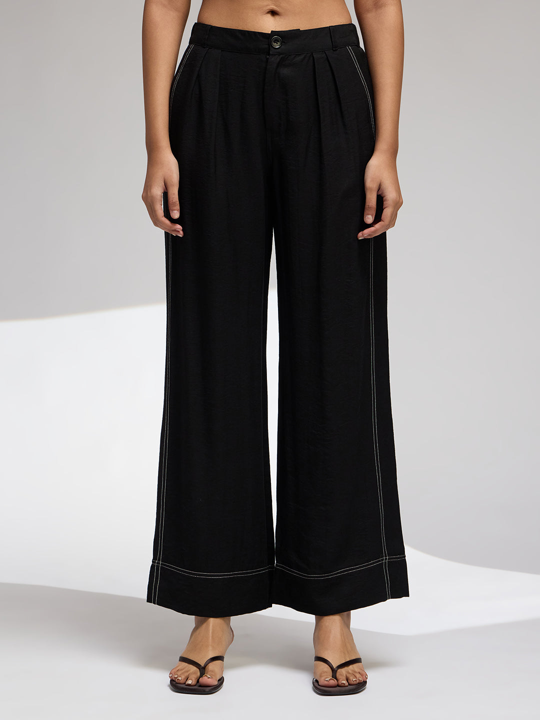 TWILL CONTRAST STITCHED RELAXED FIT TROUSERS