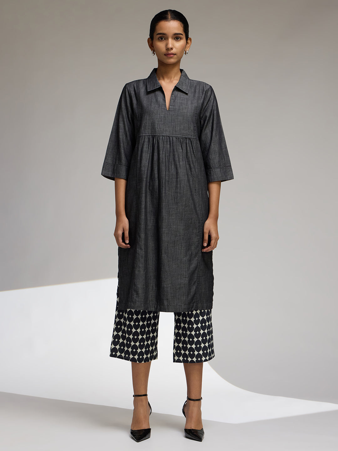 GREY MILANGE LAPEL COLLARED NIGHT SUIT