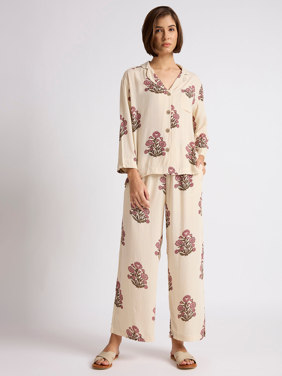 AJRAK BUTTI CRINKLE RAYON LOUNGESET