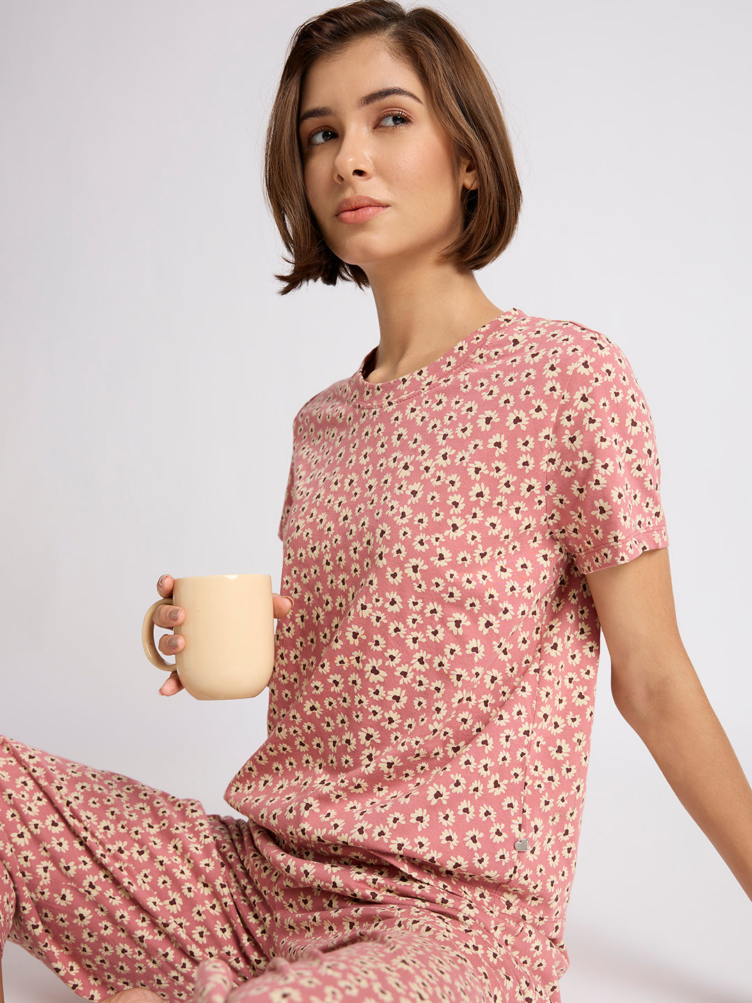 DITSY PRINTED COTTON JERSEY NIGHTSUIT