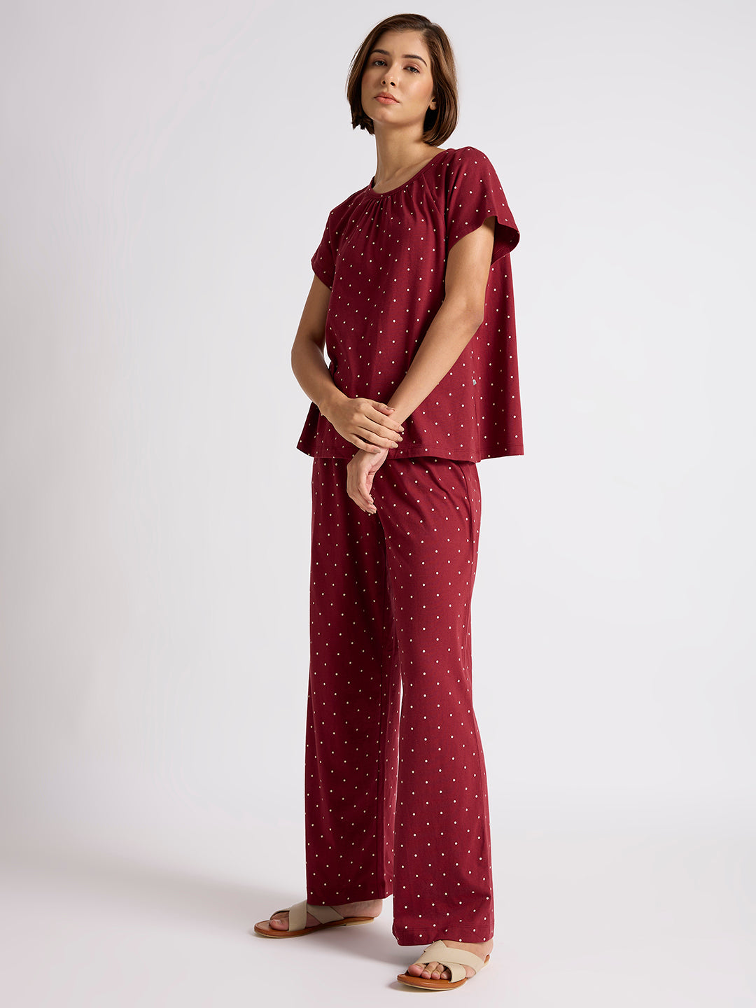 POLKA DOT COTTON JERSEY NIGHTSUIT