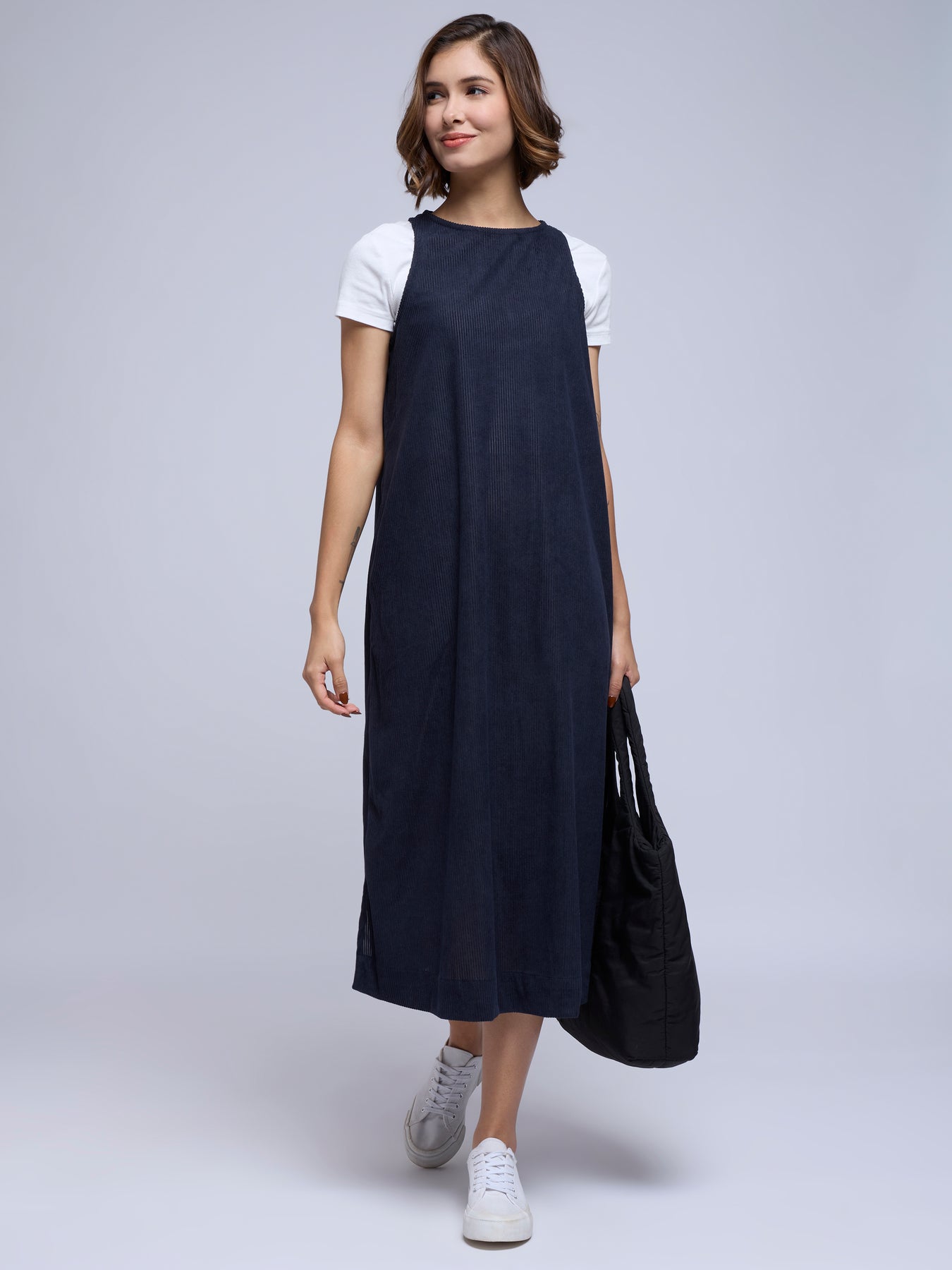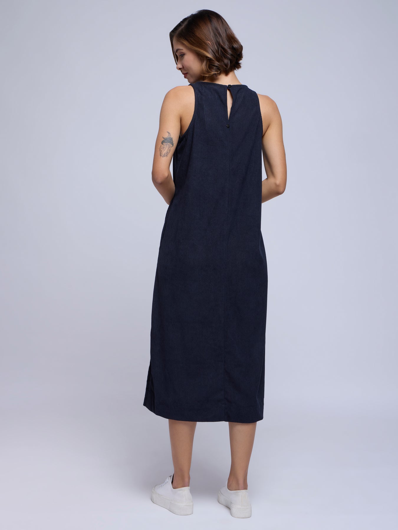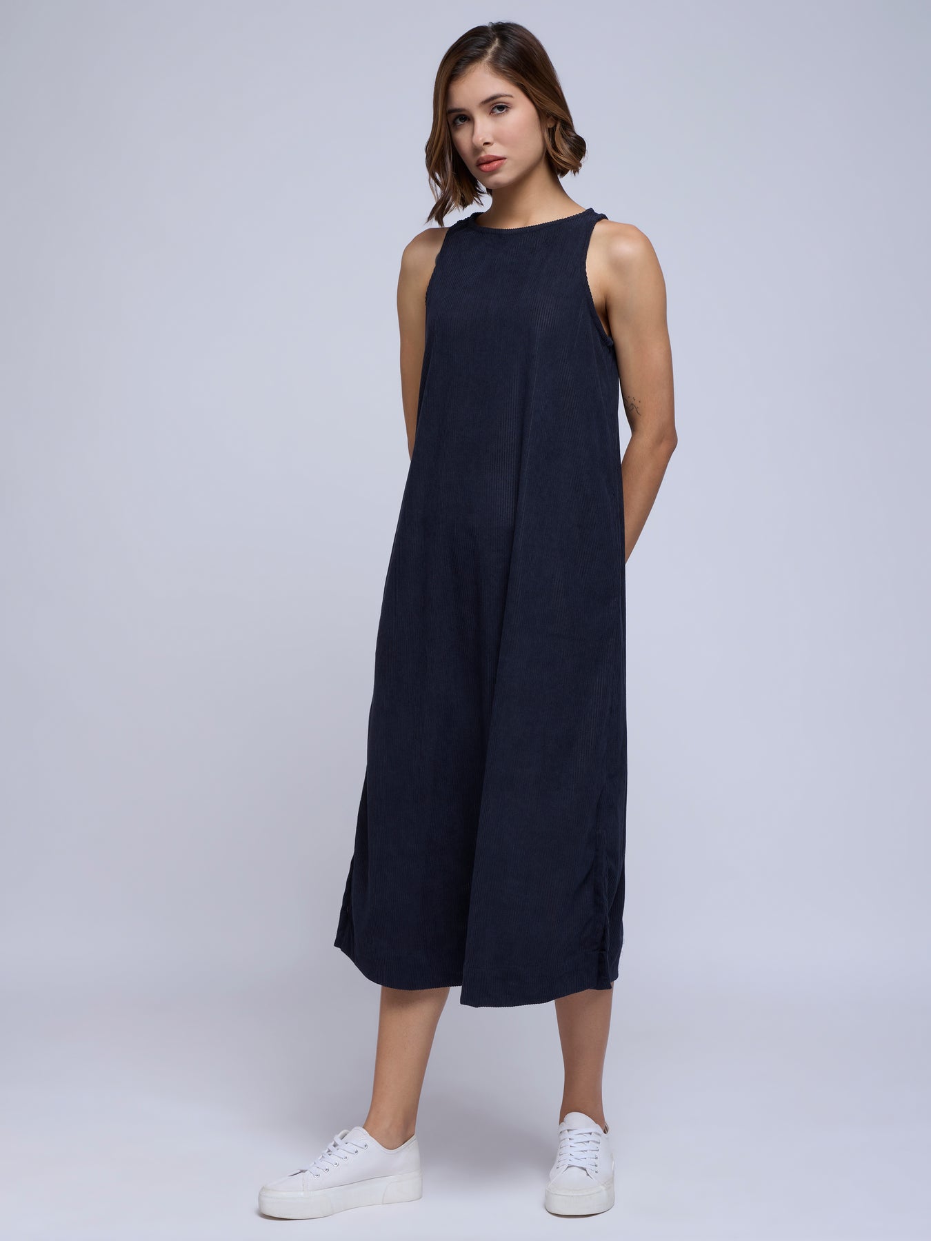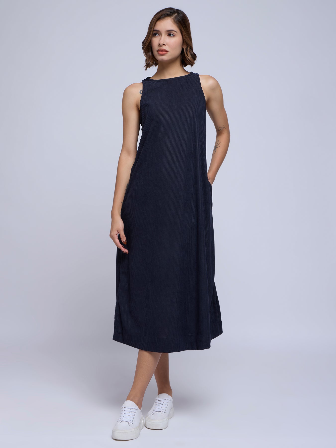 CORDROY A-LINE DRESS IN NAVY